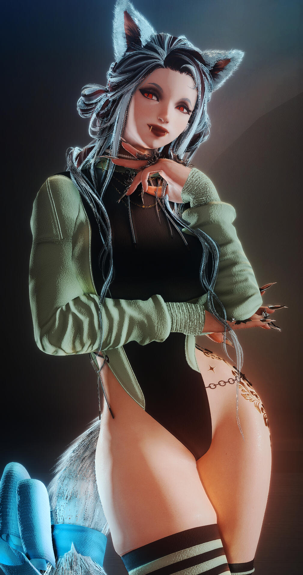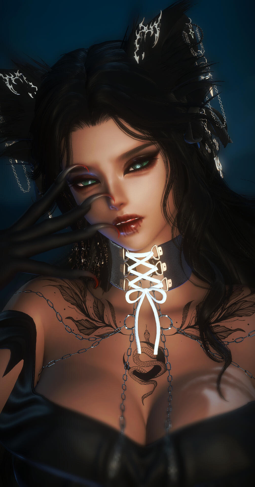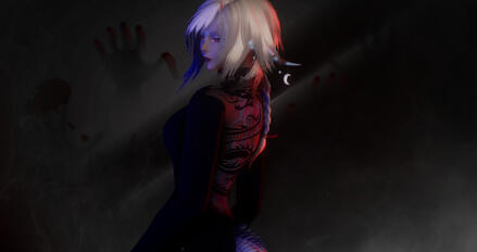 Notable Appearance Details: Nora has dark blue skin of her clan and more noticeability the long elongated ears of her tribe. She has them pierced, having left her clan to see a new life. She is shapely and muscled, a bitch with a scythe. Her body is heavily scarred which can be easily seen so she gave up hiding it. Thanks to a incident in the past her eyes glow light blue. Even her clan marks have gained this unfortunate trait.