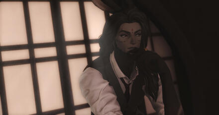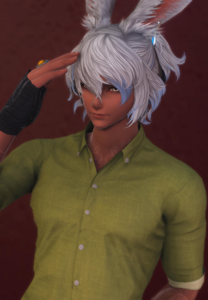Notable Appearance Details: Heavily scarred and muscled, on the taller end for Au'ra. Normally wears a visor or shades over his eyes which have no iris or pupils.