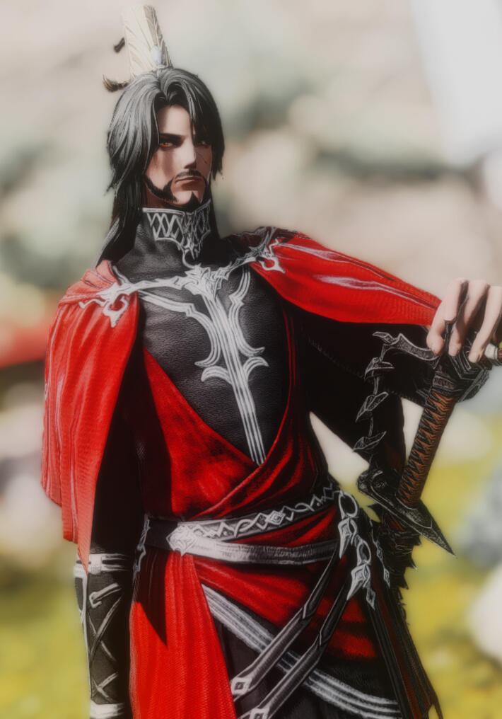Notable Appearance Details: Mostly taking after his Elezen mother in stature, although would look burlier when stood next to other Elezen, He bares the hellsguard nose and smaller ears, although they are still pointed. He bares a faint scar across his face with piercing orange eyes that seem to come across cold.